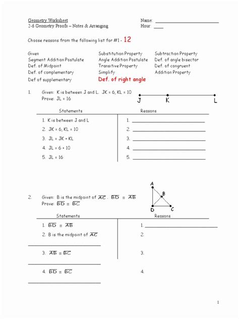 Answers to Geometry Worksheet Beginning Proofs